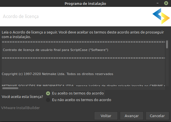 Marque a opção Eu aceito os termos do acordo e clique em avançar