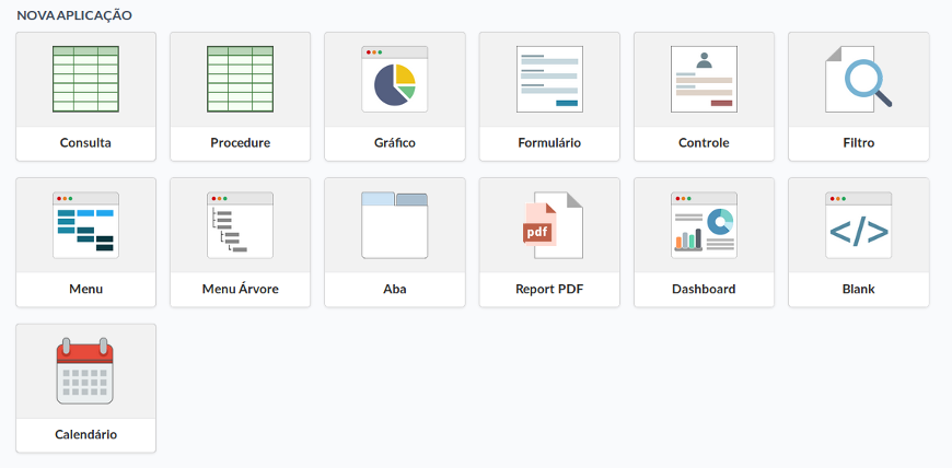Veja abaixo os tipos de aplicações disponíveis na ferramenta.