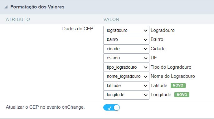 ativa a pesquisa do CEP, caso nenhum valor seja informado no campo ou quando a opção Atualizar o CEP no evento onChange está ativa.