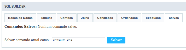 Para salvar os comandos criados, basta inserir um nome e clicar em salvar. Os comandos que já estão salvos serão listados.