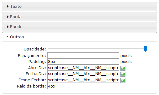 Esta opção permite selecionar um ícone para ser exibido no fechamento de uma Div. Ao clicar no botão