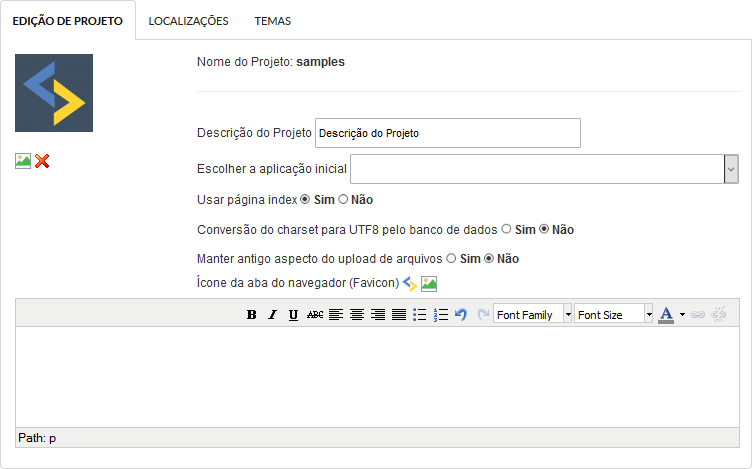 Na aba edição de projetos, podemos editar algumas informações, como descrição e definir a utilização de index.