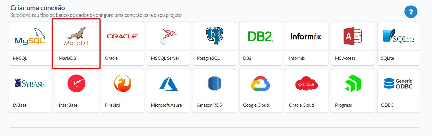 Veja abaixo como criar uma conexão em seu projeto do Scriptcase, utilizando o banco de dados MariaDB.