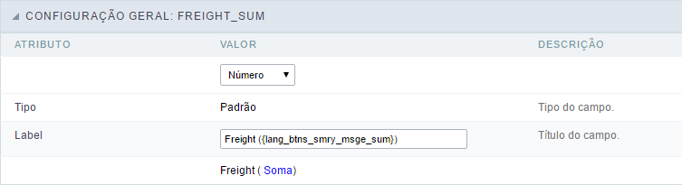 - Exibir label no SubTotal: Permite configurar a label que será exibida no Subtotal.