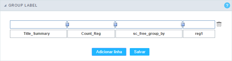 | Título | Permite definir o título que será exibido em seu Group Label. |