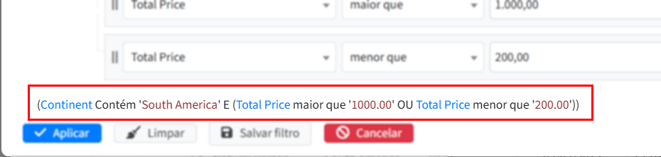 Exibir condição do filtro