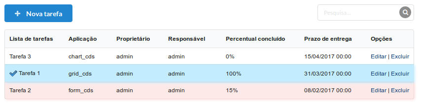 Ao acessar, veremos todas as tarefas registradas com as informações sobre cada uma delas.