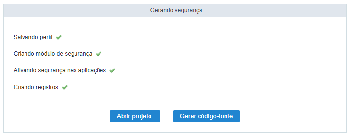 Gerar código-fonte: Gera o código fonte de todas as aplicações criadas pelo módulo de segurança.