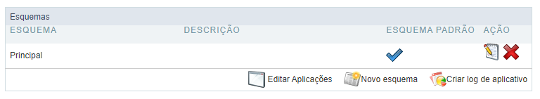 - Editar Aplicações: Edita o relacionamento das aplicações com os esquemas de log