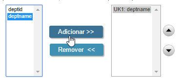 3. Para definir a chave, selecione o campo DeptName do lado esquerdo e clique no botão Adicionar. Também é possível utilizar chave única composta, para isto pressione CTRL e clique nos campos desejados.
