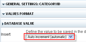 3. Abra a guia de edição Database value e altere a propriedade Insert para Auto increment (Automatic)