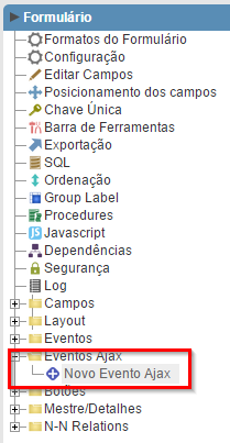 Criando um evento Ajax para o campo SSN 15. No menu de aplicação acesse a pasta Eventos Ajax e clique no item Novo Evento Ajax