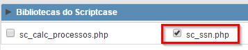 11. Acesse a guia de edição Bibliotecas ScriptCase e habilite a biblioteca sc_ssn.php