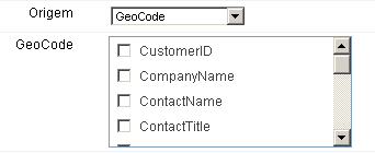 5. O Scriptcase fornece 3 modos de utilização do campo "Google Maps": "Geocode", "Latitude e Longitude" e "URL". O modo é selecionado na opção "Origem".