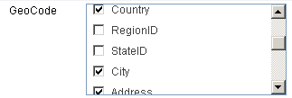 6. Neste exemplo, utilizaremos Geocode e selecionaremos os campos "Country", "City" e "Address" para definir as coordenadas.