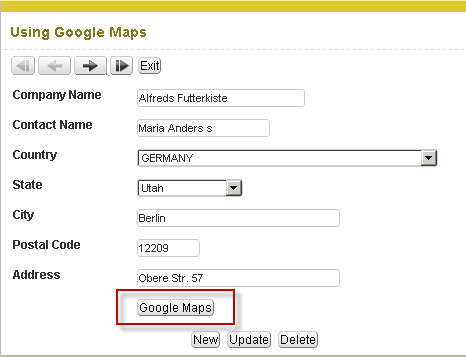 Inserindo mapas no formulário Criando um novo formulário 1. Crie uma nova aplicação do tipo formulário (simples) baseada na tabela Customers. 2. Para usar Google Maps em uma aplicação de Formulário, primeiramente devemos criar um novo campo na aplicação para exibir o mapa.