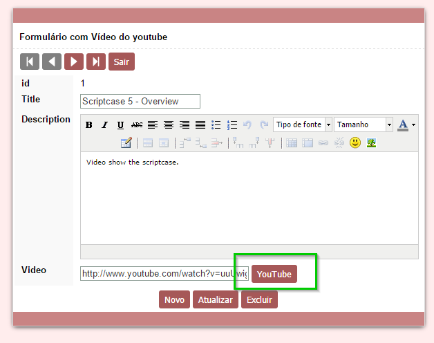 Formulário com Vídeo do youtube Neste exemplo será desenvolvido um formulário utilizando um campo referenciando vídeos do Youtube.