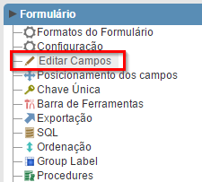 Criando o Formulário 1. Crie uma nova aplicação do tipo Formulário (Único registro) baseado na tabela Youtube. 2. No menu de aplicação acesse o item Editar Campos.