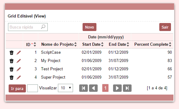 Grid Editável (View) Neste exemplo será desenvolvido um formulário do tipo "Grid Editável (View)" utilizando os recursos: Busca rápida, Ordenação e Contador.