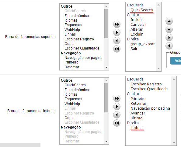 3. Inclua os botões de "Quicksearch" e "Linhas" na barra de ferramentas.