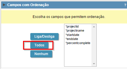 5. Clique no botão "Todos" para permitir a ordenação por qualquer campo.