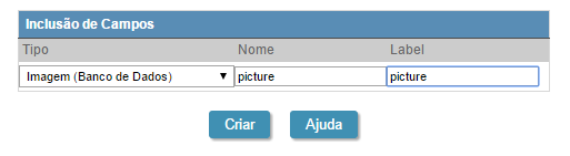 3. O campo será do tipo "Imagem (banco de dados)" e o nomearemos de "picture".