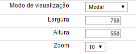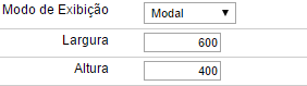 Campo YouTube 1. Selecione o YouTube na opção Tipo de Dado; 2. Em seguida, configure o modo de exibição do vídeo, neste exemplo, vamos utilizar Modal; 3. Informe a largura e altura do modal de exibição, valor em pixel;