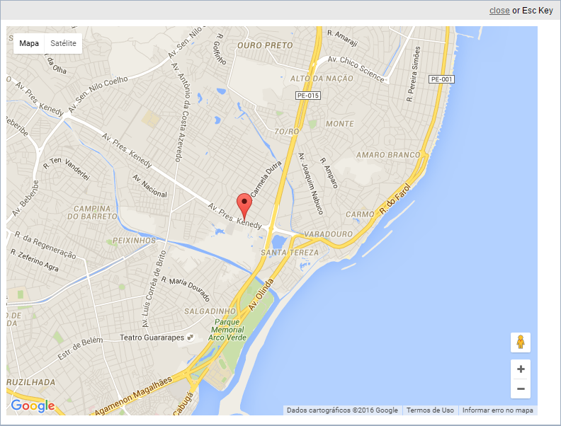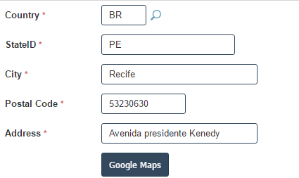 6. O mapa será exibido com a localização informada nos campos, não sendo necessário estarem salvas na tabela.