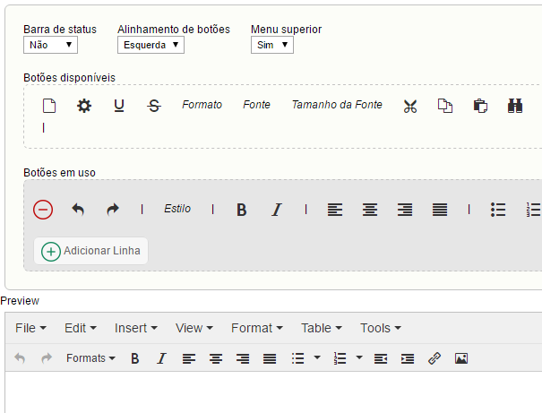 Para este exemplo, iremos utilizar os campos Google Maps, YouTube e Editor HTML, veja abaixo suas respactivas configurações.
