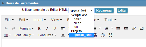 Formulário com campos especiais Neste exemplo, veremos como configurar alguns dos campos especiais do Scriptcase, em uma aplicação de formulário. Estes são os campos especiais disponíveis atualmente no Scriptcase: