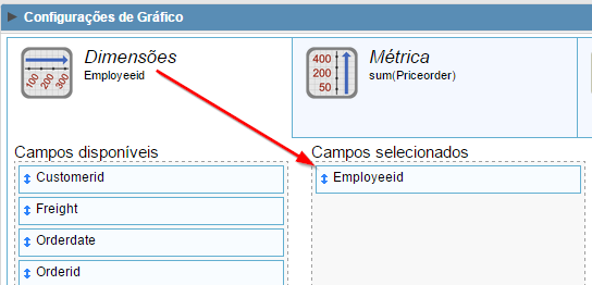 3. Em "Dimensões" selecionaremos o campo "employeeid".