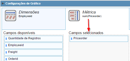 4. Em "Métrica" selecionaremos o campo "PriceOrder".