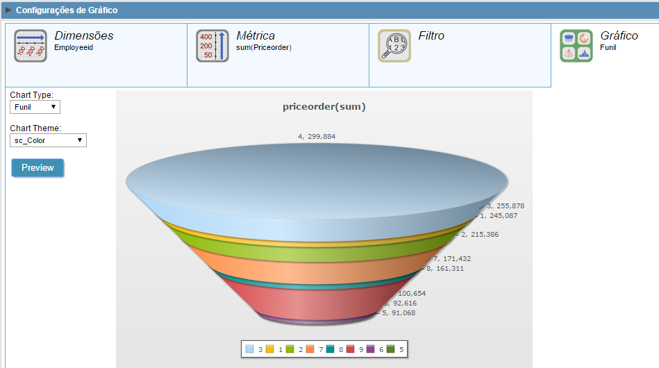 5. Em "Gráfico", o tipo selecionado será "Funil" e a dimensão 3D.