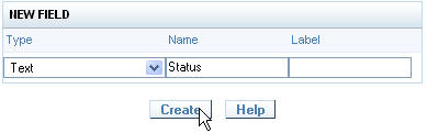 7. Na propriedade quantity informe 1 e clique no botão next. 8. Para a propriedade Type selecione Text e na propriedade Name informe Status. Deixe a propriedade Label em branco ou informe o mesmo valor da propriedade Name. Para finalizar clique no botão Create.