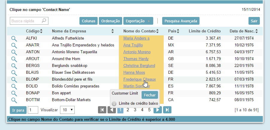 Criando a aplicação de Consulta 1. Crie uma nova aplicação de consulta baseada na tabela customers.
