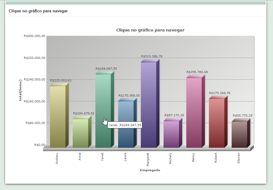 Gráfico com Link Neste exemplo veremos como criar e utilizar um link entre o gráfico e a Consulta, que permite ao usuário final navegar de um gráfico para visualizar os detalhes de um registro.
