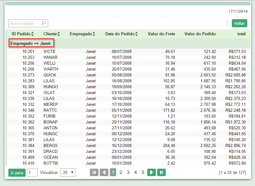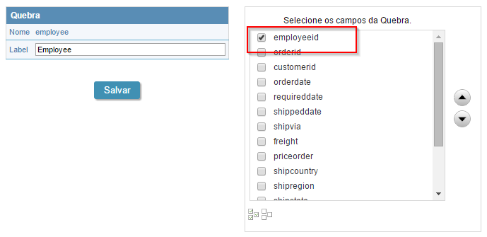 3. Selecionaremos o campo "employeeid".