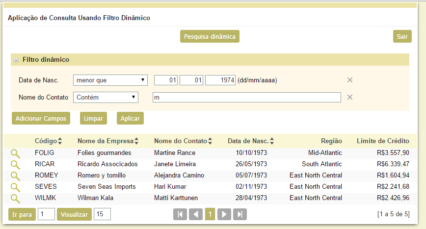 Consulta com Filtro Dinâmico Neste exemplo veremos como criar e utilizar o filtro dinâmico na aplicação de consulta, que permite realizar buscas avançadas sem a necessidade de navegar para outra aplicação.