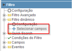 2. Acesse a guia "Filtro" no menu da aplicação, depois clique em "Filtro dinâmico>>Selecionar campos".