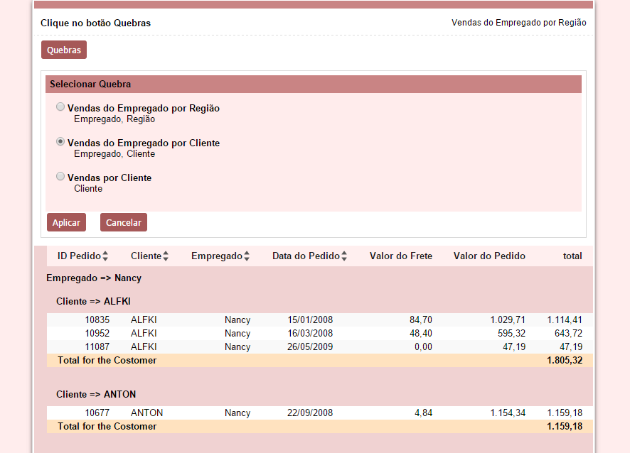 4. Criaremos uma nova quebra pelos campos "employeeid" e "customerid".