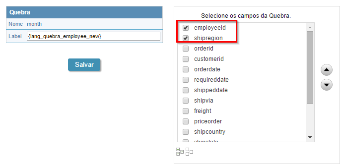 3. Selecionaremos os campos "employeeid" e "shipregion" para esta quebra.