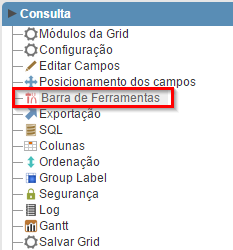 1. Acesse as configurações da Barra de ferramentas através do menu da aplicação.