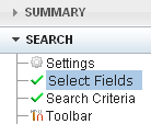 Configurando os campos do Filtro 5. Acesse a pasta Search e clique no item Select Fields.
