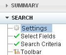 Colocando a consulta e o filtro na mesma tela 3. Acesse a pasta Search e clique no item Settings.