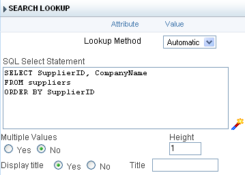 8. Altere a propriedade Data Type para Select. 9. Ainda no campo SupplierID acesse a guia de edição Search Lookup.