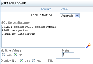 12. Acesse as configurações do campo CategoryID. Altere a propriedade Data Type para Select e faça as seguintes configurações na guia de edição Search Lookup.
