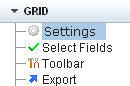 Iniciando a consulta pelo filtro 3. Acesse a pasta Grid e clique no item Settings.