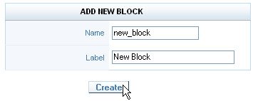 6. Clique no botão Create New Block. 7. Na próxima tela informe o nome e o label do bloco.