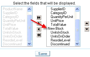 11. No bloco New Block coloque os campos UnitsInStock, UnitsOnOrder, ReorderLevel e Discontinued.